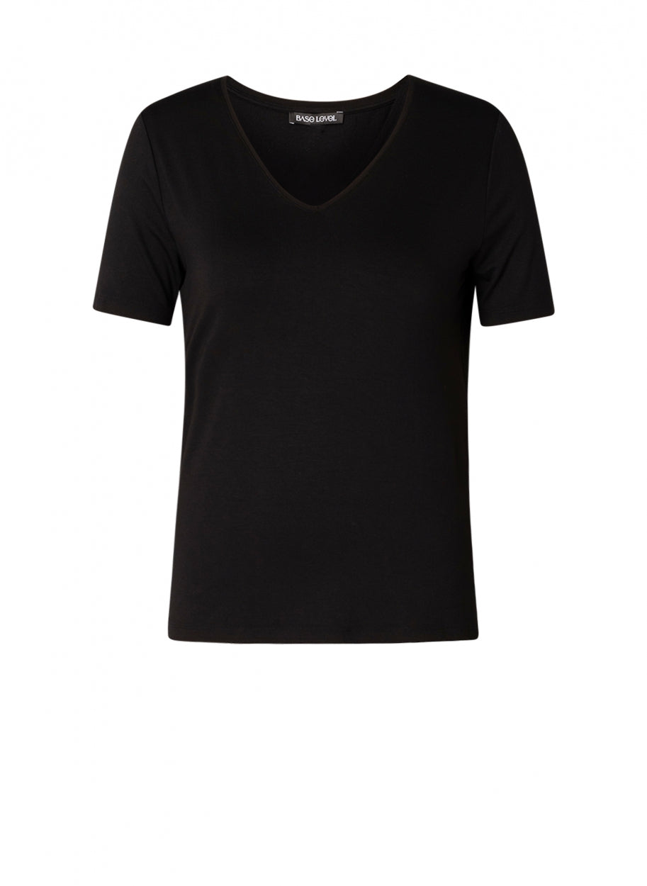 Yanic is een recht T-shirt van een soepele viscosemix met een V-hals. Yanic is verkrijgbaar in de kleuren white, light beige, dark blue en black.