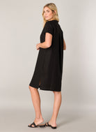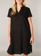 Yacin is een jurk in een soepele linnen/viscose kwaliteit. De jurk heeft 2 splitjes en een plooi op de rug wat zorgt voor een comfortabele fit. Yacin is verkrijgbaar in de kleuren zwart en light beige.