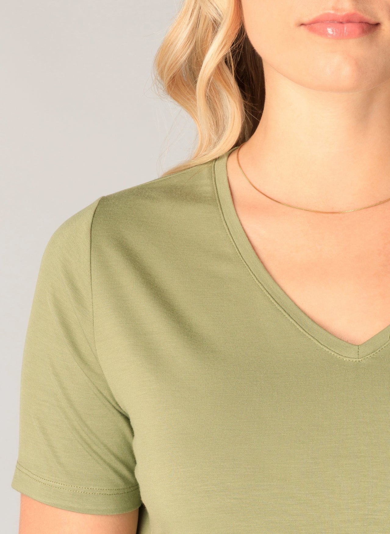 Yanic is een recht T-shirt van een soepele viscosemix met een V-hals. Yanic is verkrijgbaar in de kleuren white, light beige, dark blue en black.