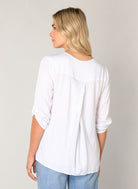 Yani is gemaakt van Lenzing Ecovero, een materiaal gemaakt van houtpulp uit gecertificeerde bronnen. De blouse heeft een driekwart mouw die kan worden opgerold en vastgezet door een knoopsluiting. Yani is verkrijgbaar in de kleuren white, dark blue en black.