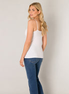 Yelin is een nauwsluitend katoenen jersey top met smalle schouderbanden met een kanten detail.