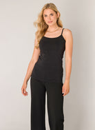 Yoshji is een nauwsluitend BCI-katoenen jersey top met smalle verstelbare schouderbanden en een ronde halslijn.