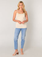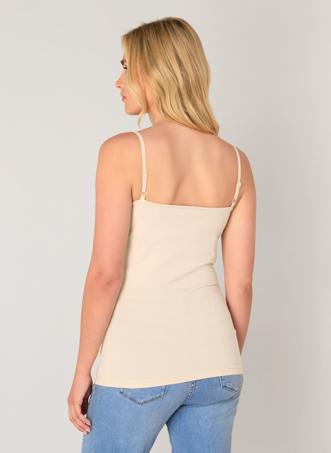 Yoshji is een nauwsluitend BCI-katoenen jersey top met smalle verstelbare schouderbanden en een ronde halslijn.