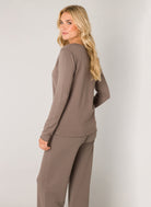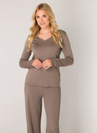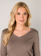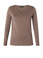 Yola is een fijngebreide trui met V-hals van een zachte viscosemix met lange mouwen. Yola is verkrijgbaar in black, dark blue, dark taupe en light beige.