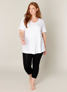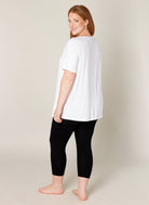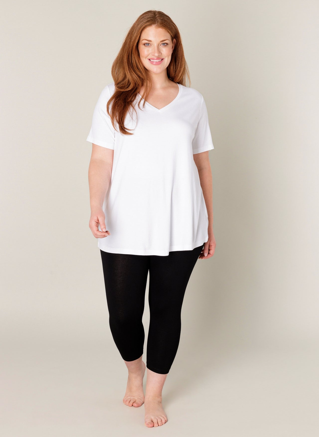 Audrey is een comfortabele driekwart legging van een zachte viscosemix met een elastische tailleband. Audrey is verkrijgbaar in white, dark blue en black.