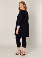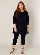Aria is een A-lijn top met 3/4 mouw en een ronde hals van een zachte tricot viscose mix. Aria is verkrijgbaar in donkerblauw en zwart.