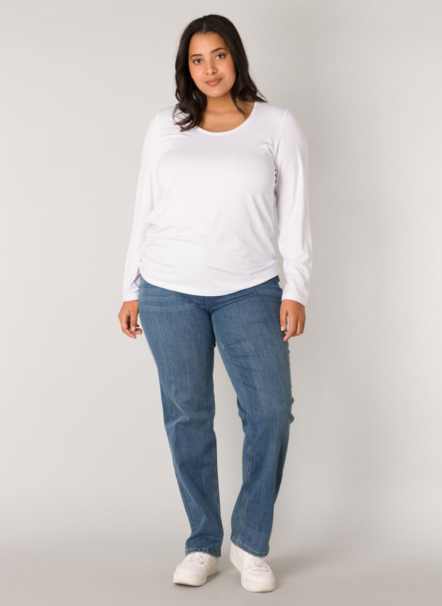 Aso is een slim fit T-shirt met lange mouwen van een zachte vicosemix en een ronde halslijn. Aso is verkrijgbaar in white, dark bue en black.
