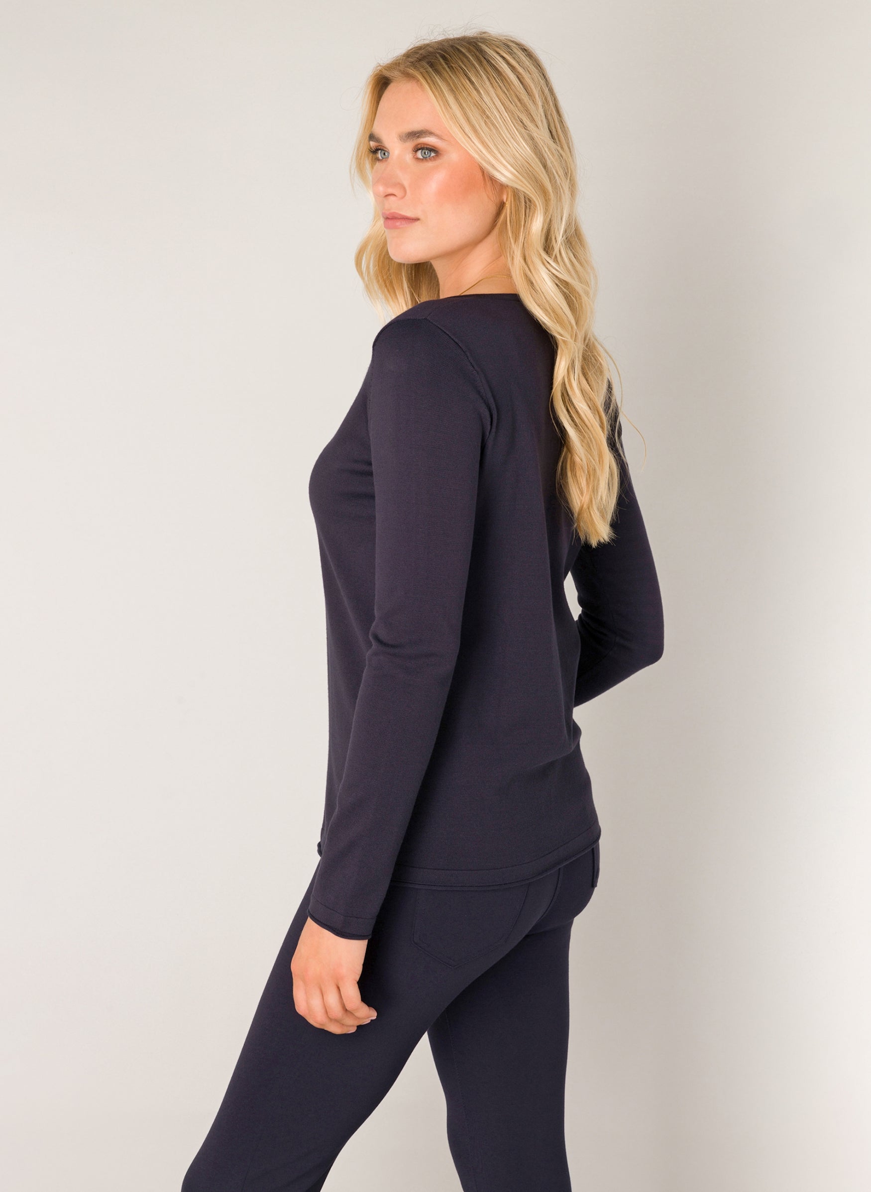 Yola ist ein fein gestrickter Pullover mit V-Ausschnitt aus einer weichen Viskosemischung und langen Ärmeln. Yola ist in den Farben Schwarz, Dunkelblau, Dunkeltaupe, Hell Beige erhältlich.