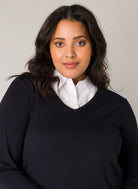 Yolina ist ein Blusenkragen, der mit einer Knopfleiste, einem flachen Kragen und elastischen Bändern ausgestattet ist, die den Kragen in Position halten. Yolina ist in den Farben Weiß und Schwarz erhältlich.