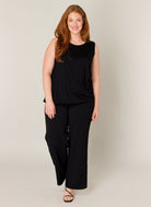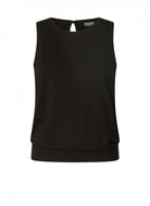 Yasmina ist ein ärmelloses Oberteil aus einer weichen Viskosemischung. Das Oberteil hat einen Rundhalsausschnitt, einen Knopfverschluss im Nacken und ein breites Verbindungsband im unteren Bereich, das einen Bluseneffekt erzeugt. Yasmina ist in den Farben Weiß, Dunkelblau und Schwarz erhältlich.