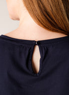 Yasmina ist ein ärmelloses Oberteil aus einer weichen Viskosemischung. Das Oberteil hat einen Rundhalsausschnitt, einen Knopfverschluss im Nacken und ein breites Verbindungsband im unteren Bereich, das einen Bluseneffekt erzeugt. Yasmina ist in den Farben Weiß, Dunkelblau und Schwarz erhältlich.
