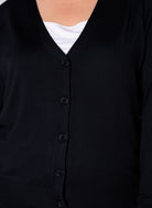 Yvonne ist eine fein gestrickte Strickjacke aus einer weichen Viskosemischung. Die Strickjacke hat eine normale Passform, einen V-Ausschnitt und einen Knopfverschluss vorne. Yvonne ist in den Farben Hellbeige, Dunkelblau und Schwarz erhältlich.
