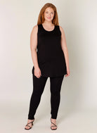 Alicia ist ein A-Linien-Top mit breiten Trägern aus einer weichen Viskosequalität. Das Oberteil hat einen runden Ausschnitt und seitliche Schlitze am unteren Ende. Alicia ist in den Farben Weiß, Dunkelblau und Schwarz erhältlich.