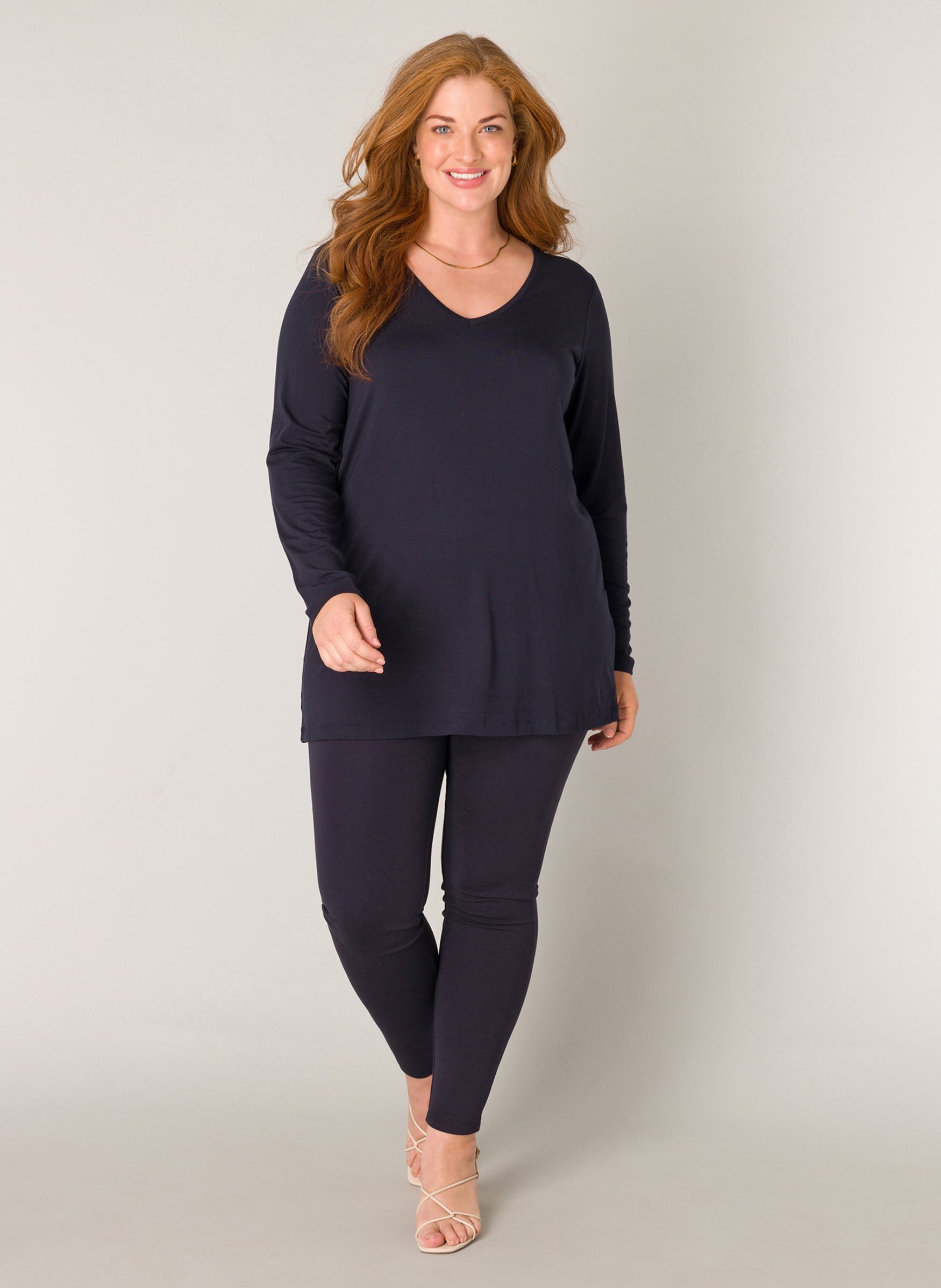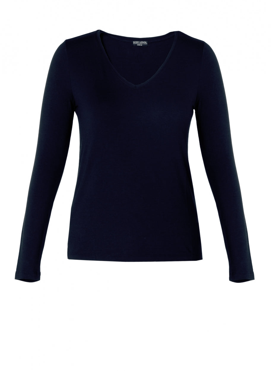 Alize ist ein langärmeliges T-Shirt in bequemer Passform aus einer weichen Viskosemischung und einem V-Ausschnitt. Alize ist in den Farben Weiß, Dunkeltaupe, Dunkelblau und Schwarz erhältlich.