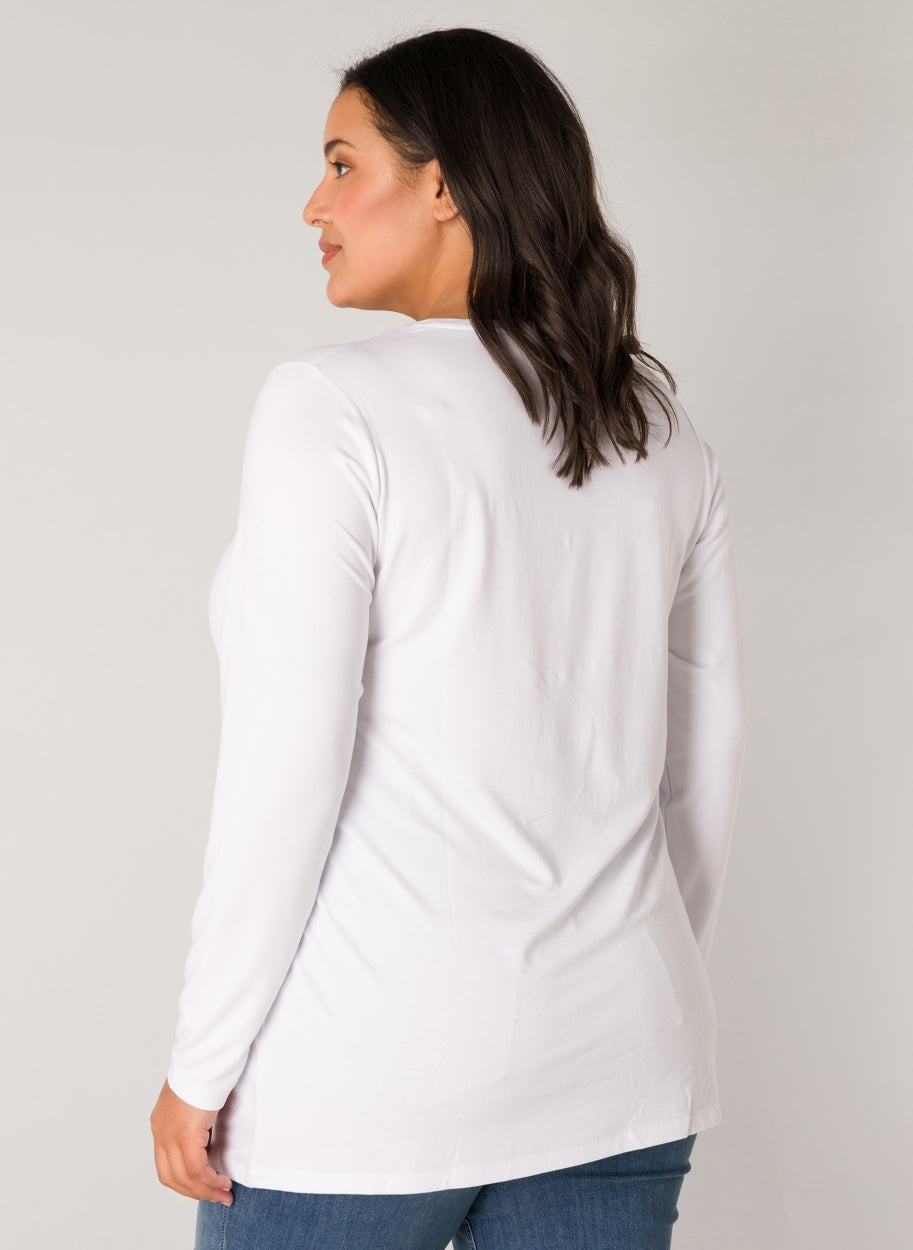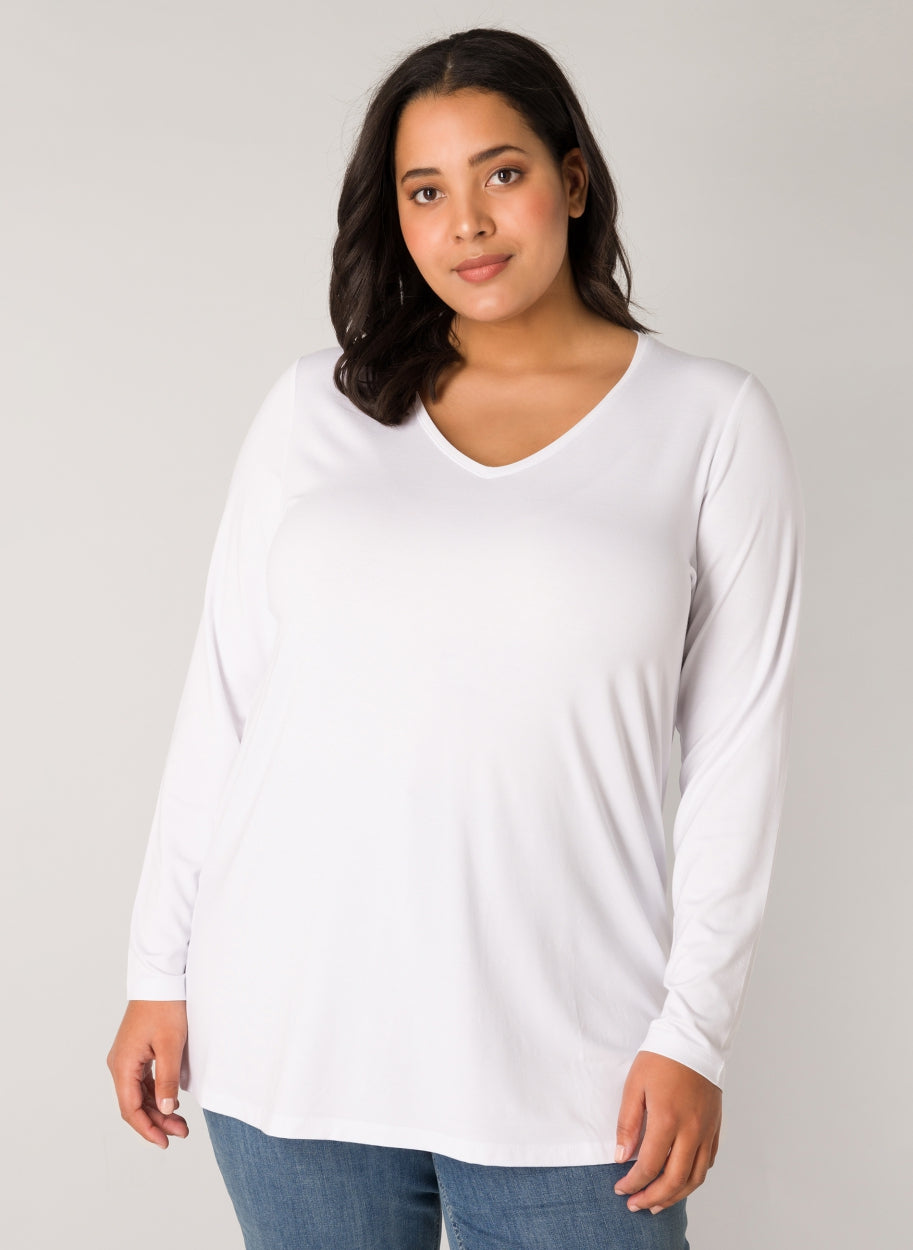 Alize ist ein langärmeliges T-Shirt in bequemer Passform aus einer weichen Viskosemischung und einem V-Ausschnitt. Alize ist in den Farben Weiß, Dunkeltaupe, Dunkelblau und Schwarz erhältlich.