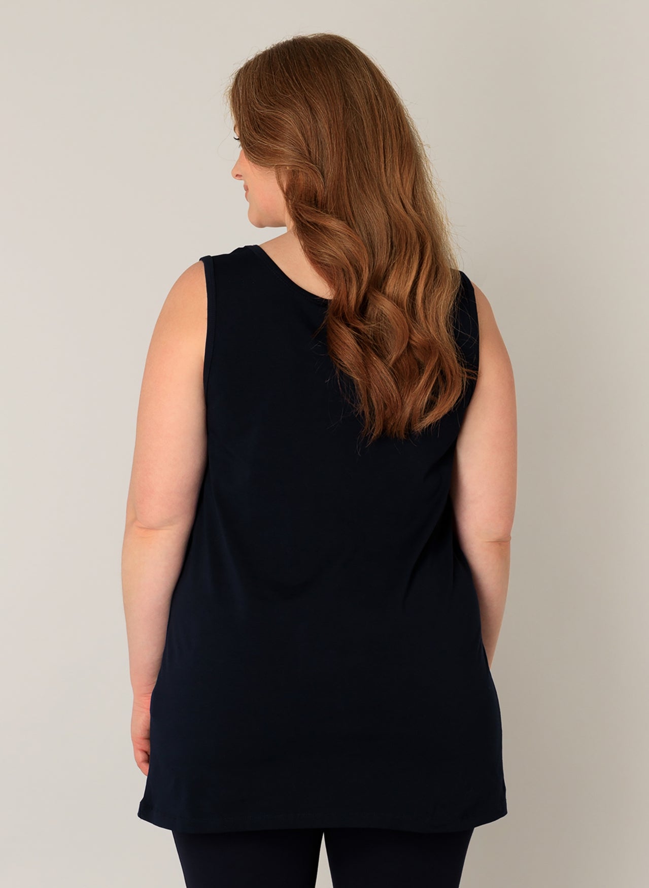 Amina ist ein basic langer Tanktop aus BCI-Baumwolle mit einem runden Ausschnitt.