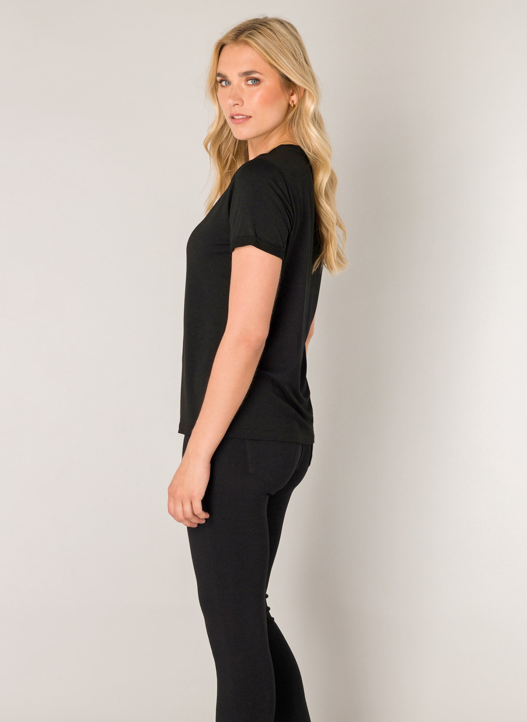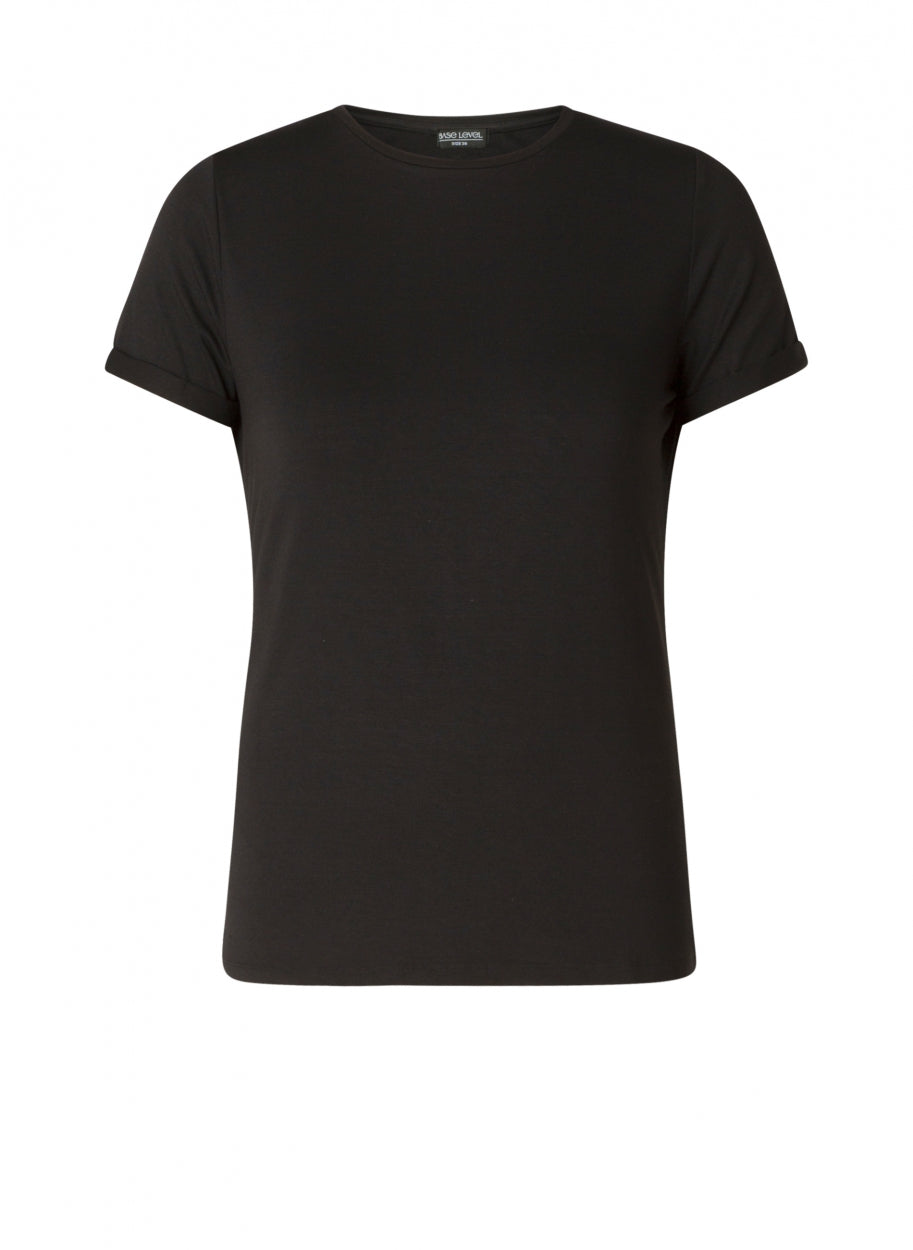Yalba ist ein gerades T-Shirt aus einer geschmeidigen Viskosemischung mit Rundhalsausschnitt und umgeschlagenem Saum an den Ärmeln. Yalba ist in den Farben Weiß, Schwarz und Dunkelblau erhältlich.