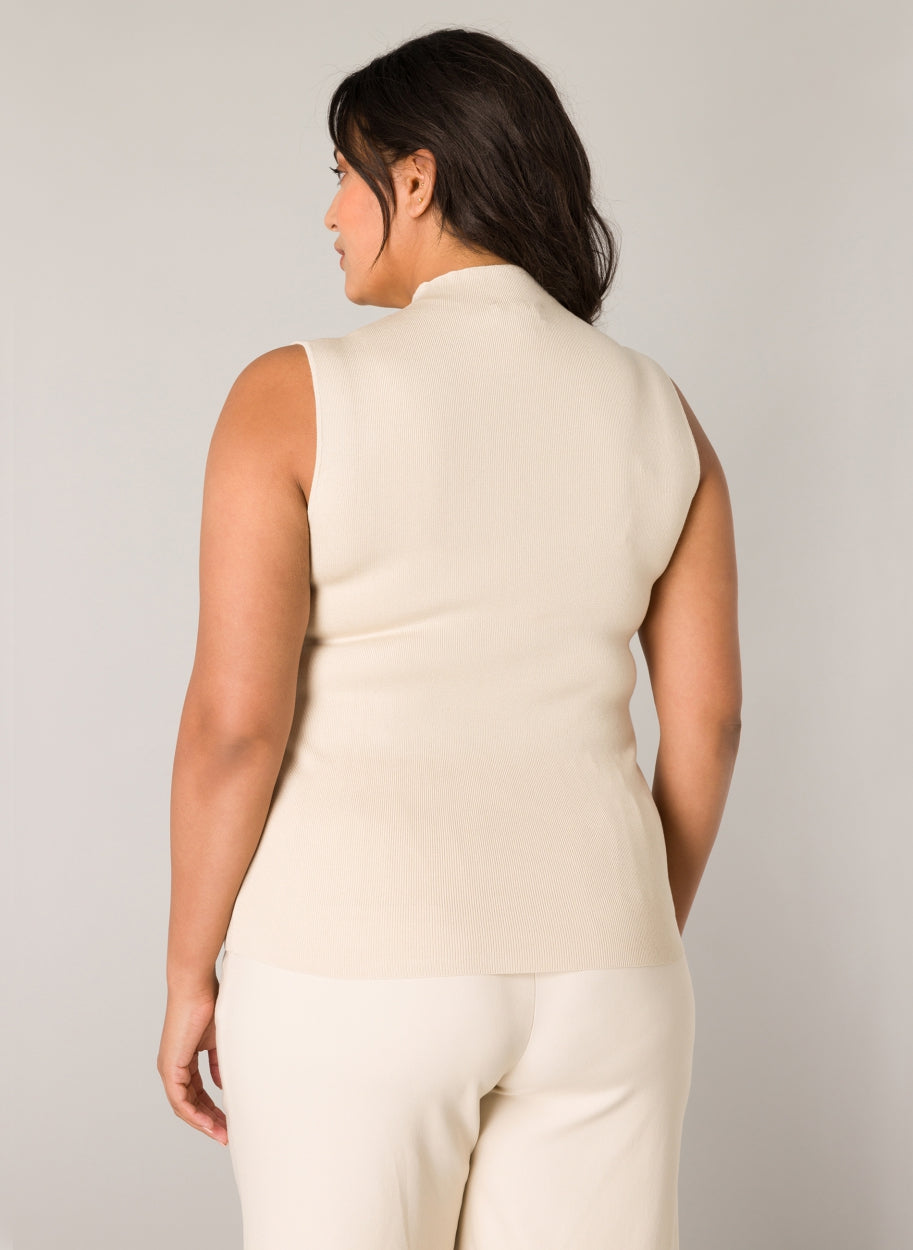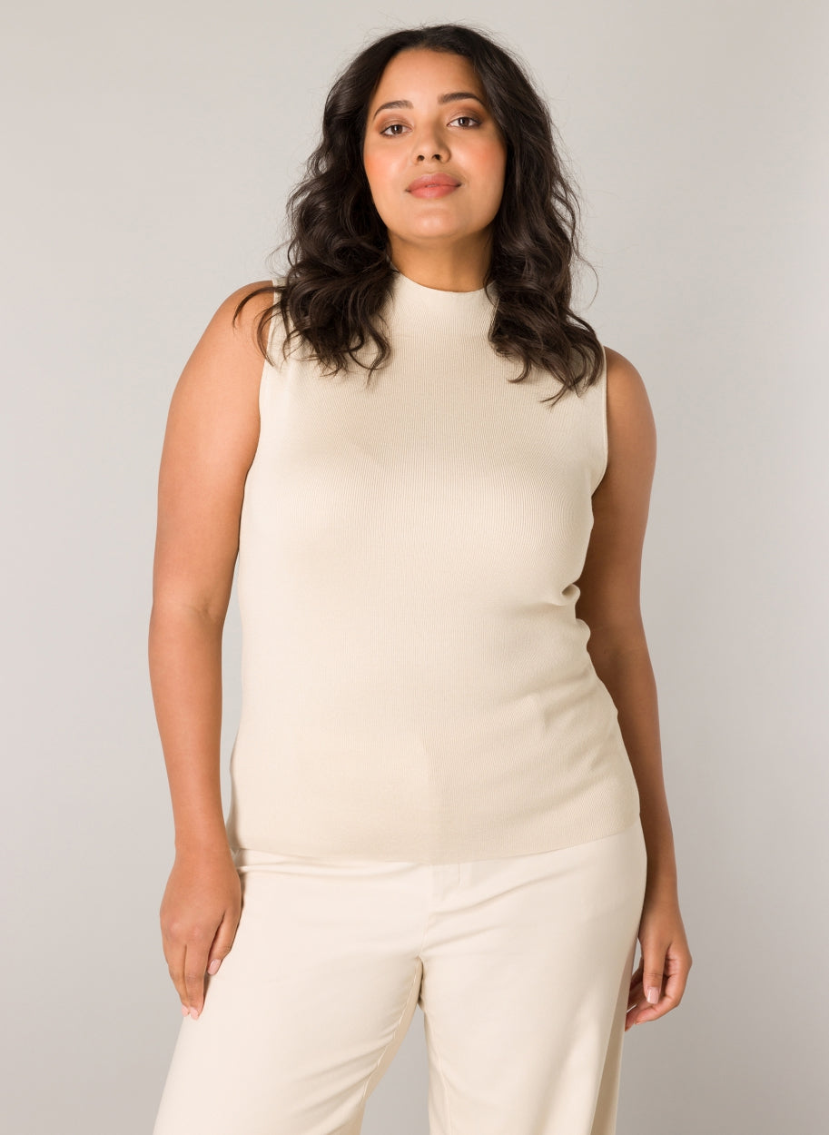 Yaline ist ein tailliertes, ärmelloses Oberteil aus einer fein gestrickten Viskosemischung. Yaline ist in Schwarz und Hellbeige erhältlich.