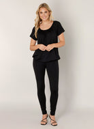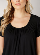 Yona ist ein kurzärmeliges Oberteil mit plissiertem Halsausschnitt aus einer weichen Viskosemischung. Das Unterteil ist mit einem elastischen Band versehen, um einen Blusen-Effekt zu erzielen. Yona ist in den Farben Weiß, Schwarz, Hellbeige und Dunkelblau erhältlich.