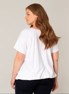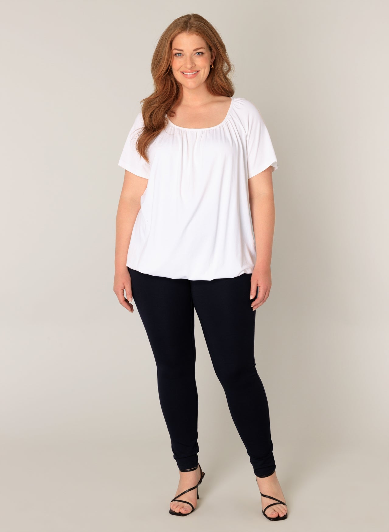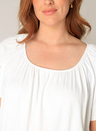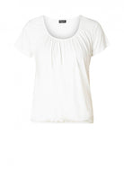 Yoni ist ein kurzärmeliges Oberteil mit plissiertem Halsausschnitt aus einer weichen Viskosemischung. Das Unterteil ist mit einem elastischen Band versehen, um einen Blusen-Effekt zu erzielen. Yoni ist in den Farben Weiß, Dunkelblau und Schwarz erhältlich.