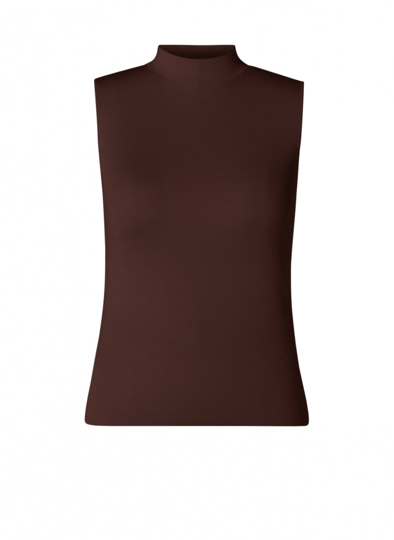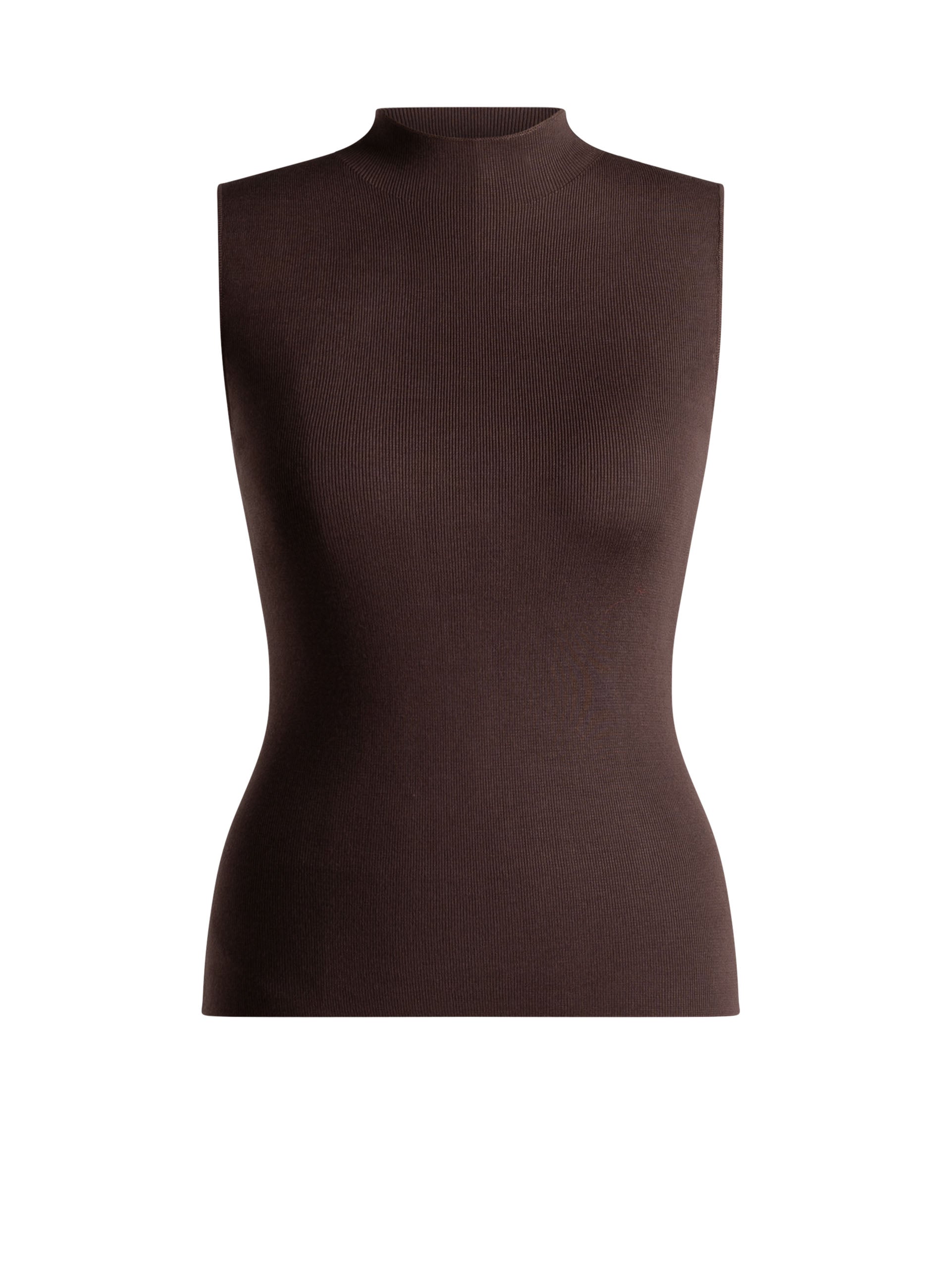 Yali is a fitted, sleeveless top in a fine-knit viscose blend. Yali is available in black and light beige.