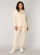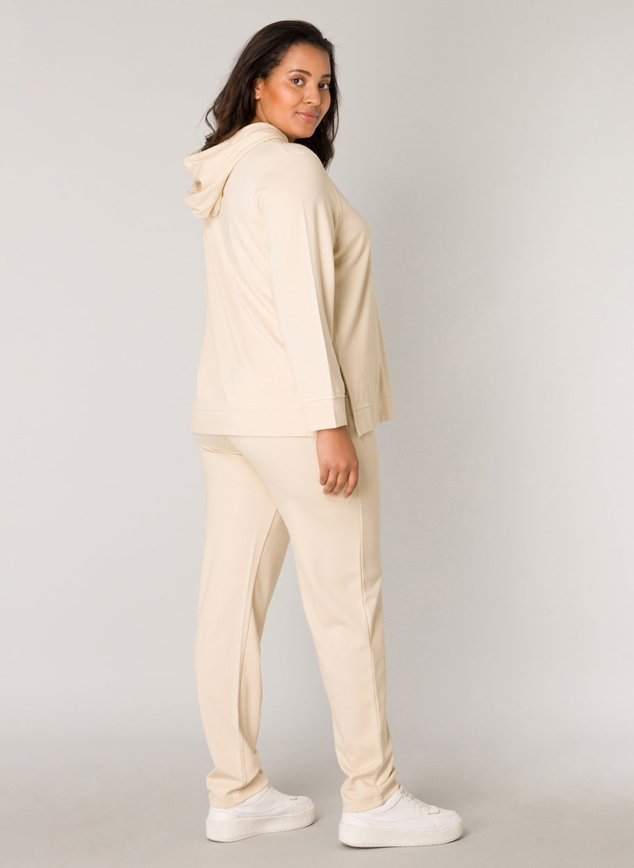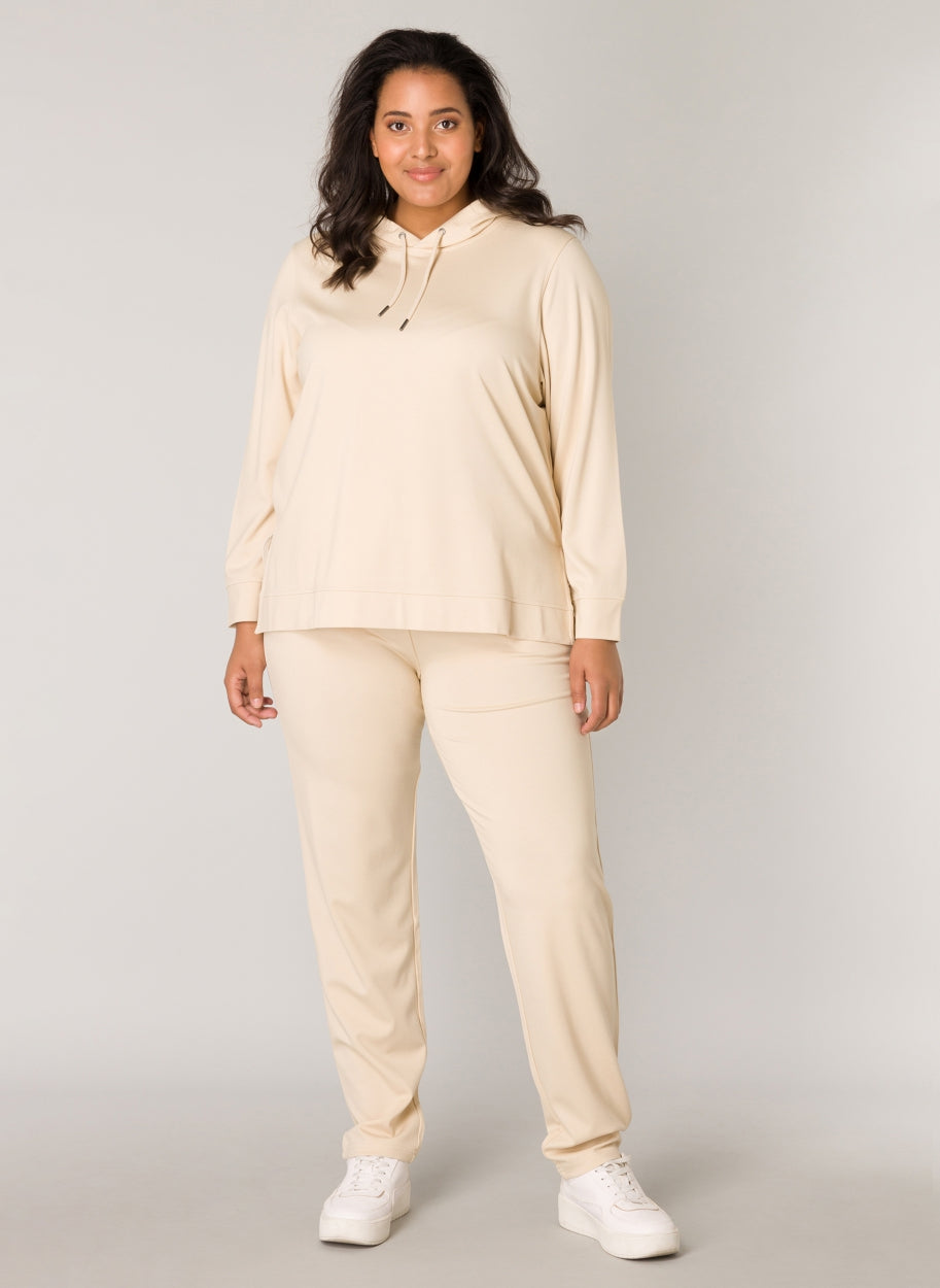 Yalisa from Base Level Curvy is a jumper in a soft viscose blend. The jumper has a drawstring hood and 2 side slits. Yalisa can be combined with matching trousers Yoanna and both are available in light beige and black.