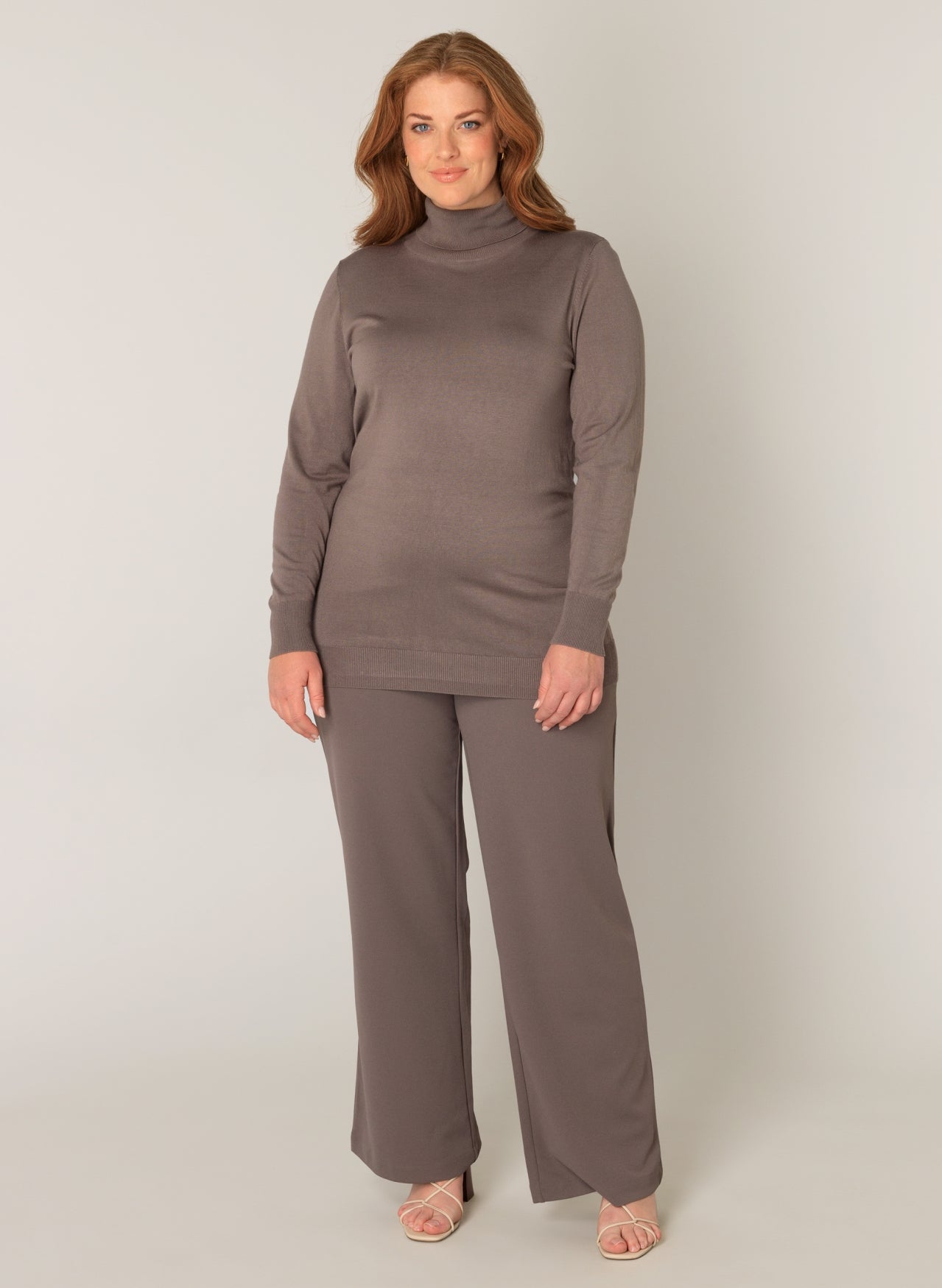 Yuena is a fitted turtleneck jumper in a fine-knit viscose blend. Yuena is available in light beige, dark taupe, dark blue and black.