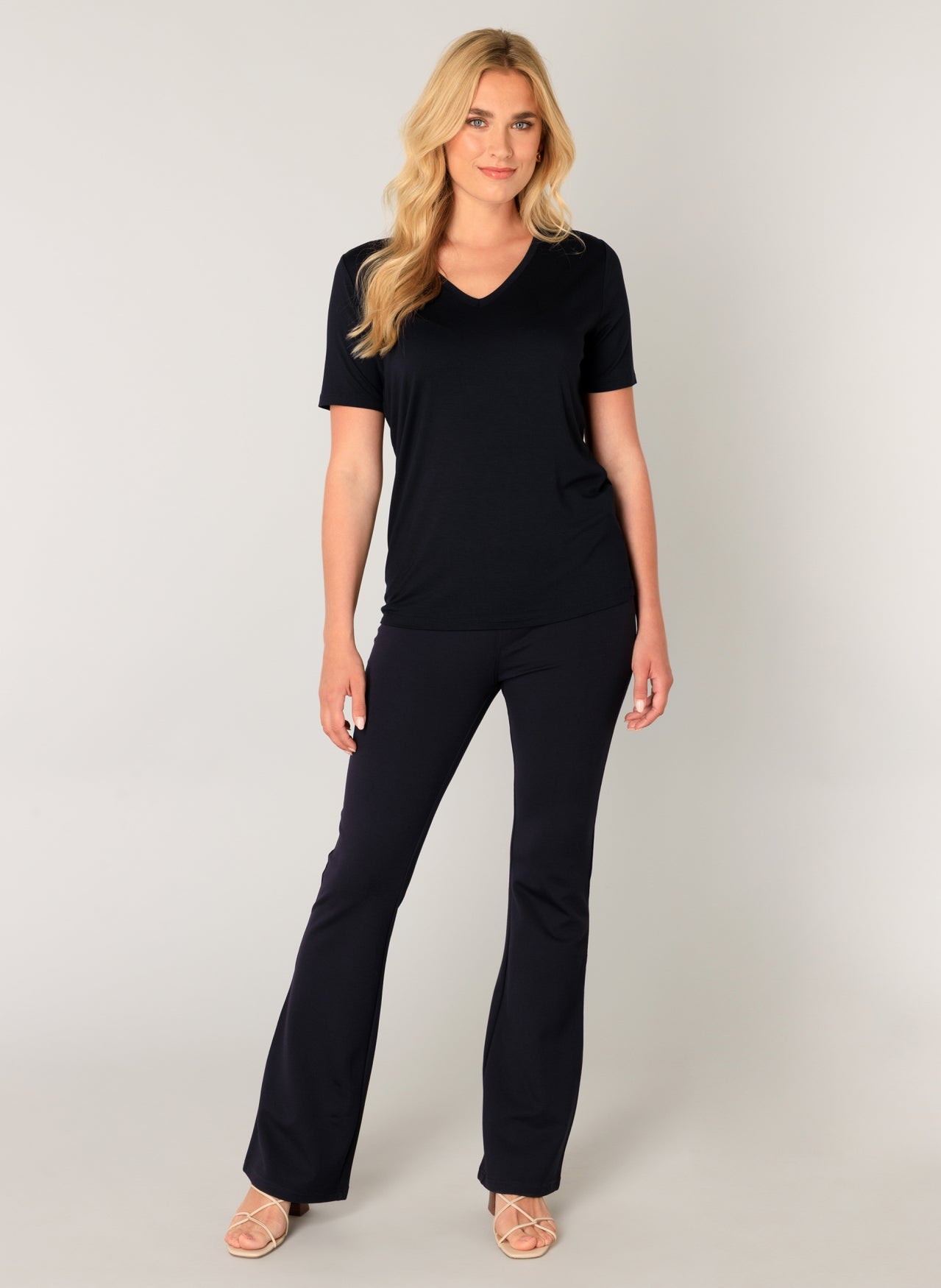 Yanic is een recht T-shirt van een soepele viscosemix met een V-hals. Yanic is verkrijgbaar in de kleuren white, light beige, dark blue en black.
