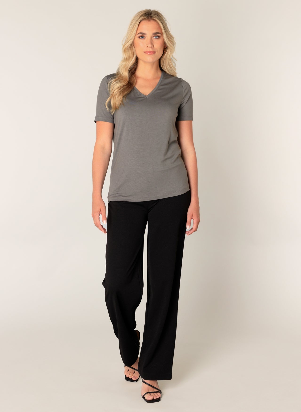 Yanic is een recht T-shirt van een soepele viscosemix met een V-hals. Yanic is verkrijgbaar in de kleuren white, light beige, dark blue en black.