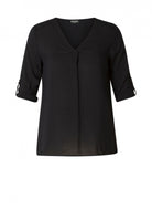 Blouse Yanina is gemaakt van een zachte Lenzing Ecovero, een materiaal gemaakt van houtpulp uit gecertificeerde bronnen. Deze vezels hebben een EU-milieukeurmerk gekregen voor materiaal, productie en distributie. De blouse heeft een driekwart mouw die kan worden opgerold en vastgezet door een knoopsluiting en is verkrijgbaar in de kleuren white, dark blue en black.