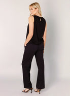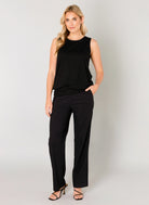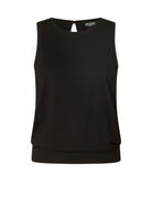 Yasmin is een mouwloze top van een zachte viscosemix. De top heeft een ronde halslijn, knoopsluiting in de nek en een brede aansluitende band aan de onderzijde waarmee een blousend effect kan worden gecreëerd . Yasmin is verkrijgbaar in white, black en dark blue.