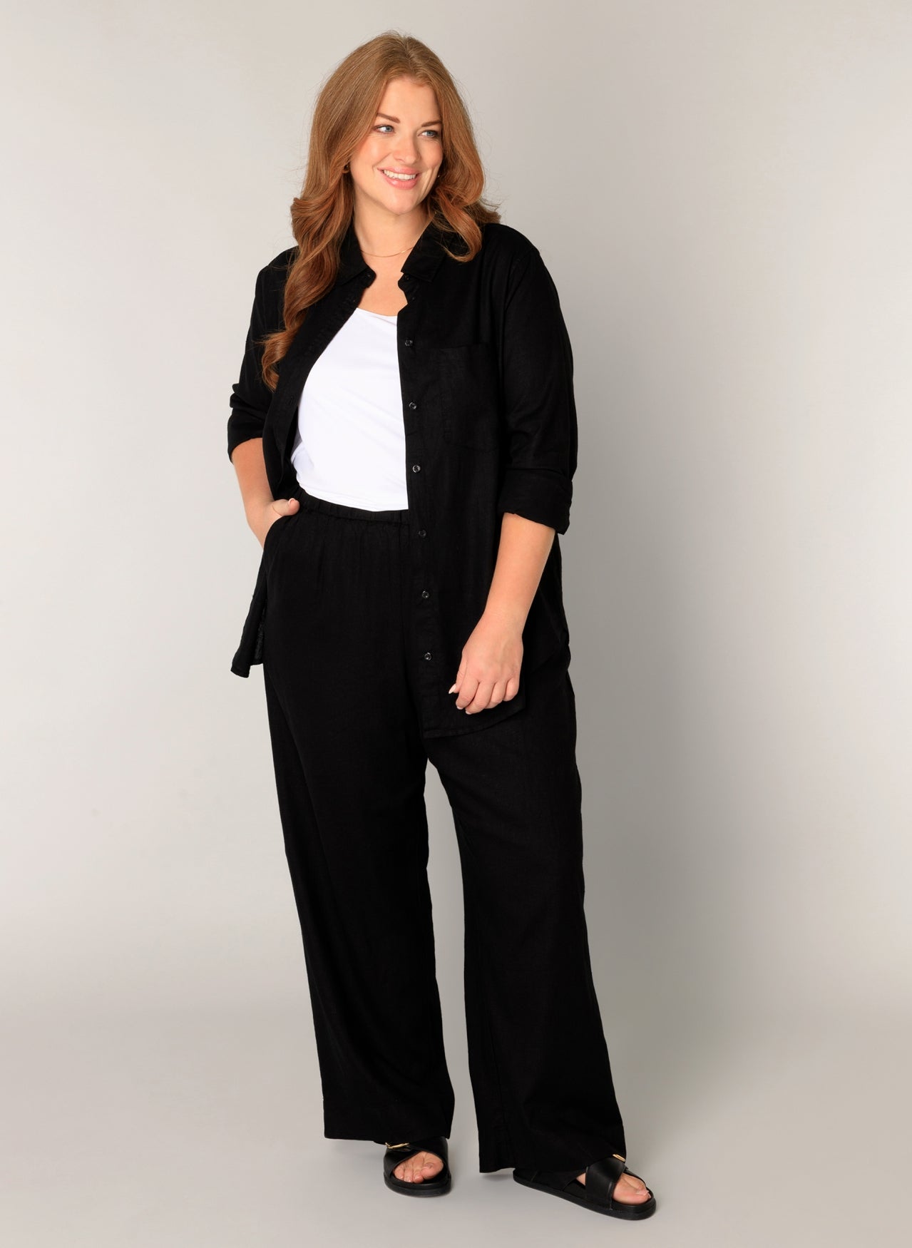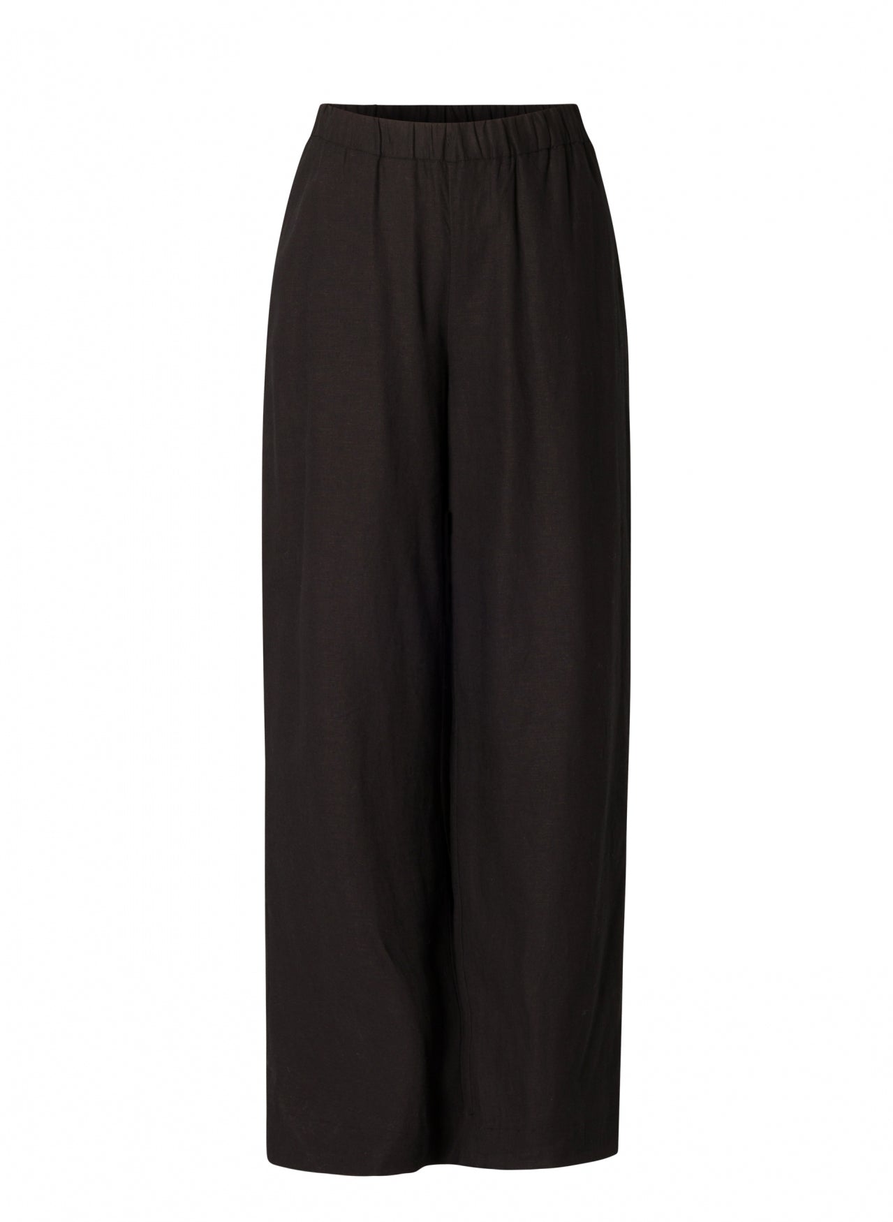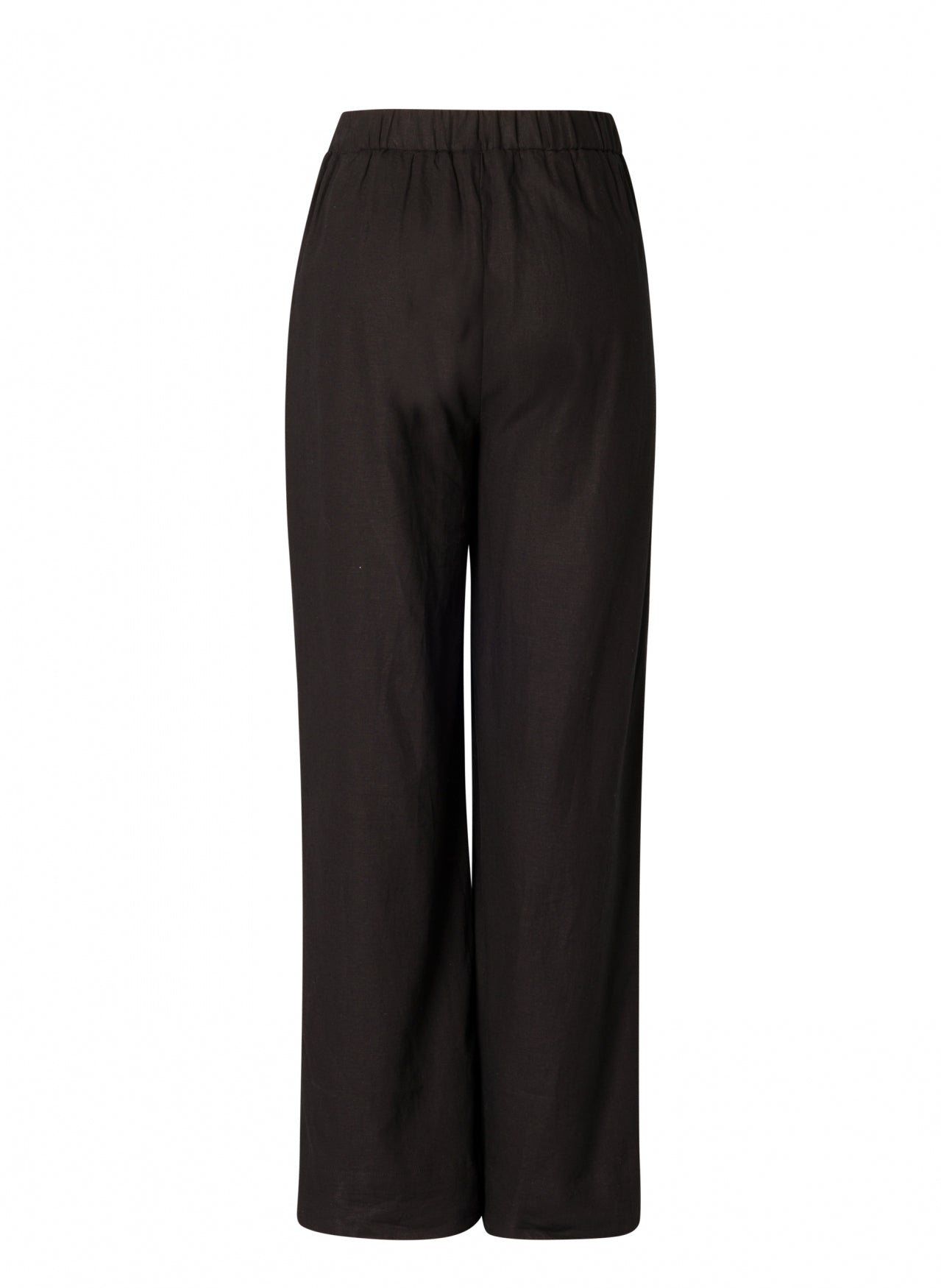 Pants Yula is een comfortabele wijdvallende broek in een zachte linnen/viscose kwaliteit. Het heeft een elastische tailleband en is verkrijgbaar in de kleuren light beige en black.